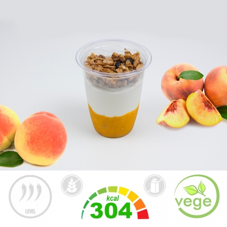 Jogurt naturalny brzoskwiniowy z crunchy z owocami.